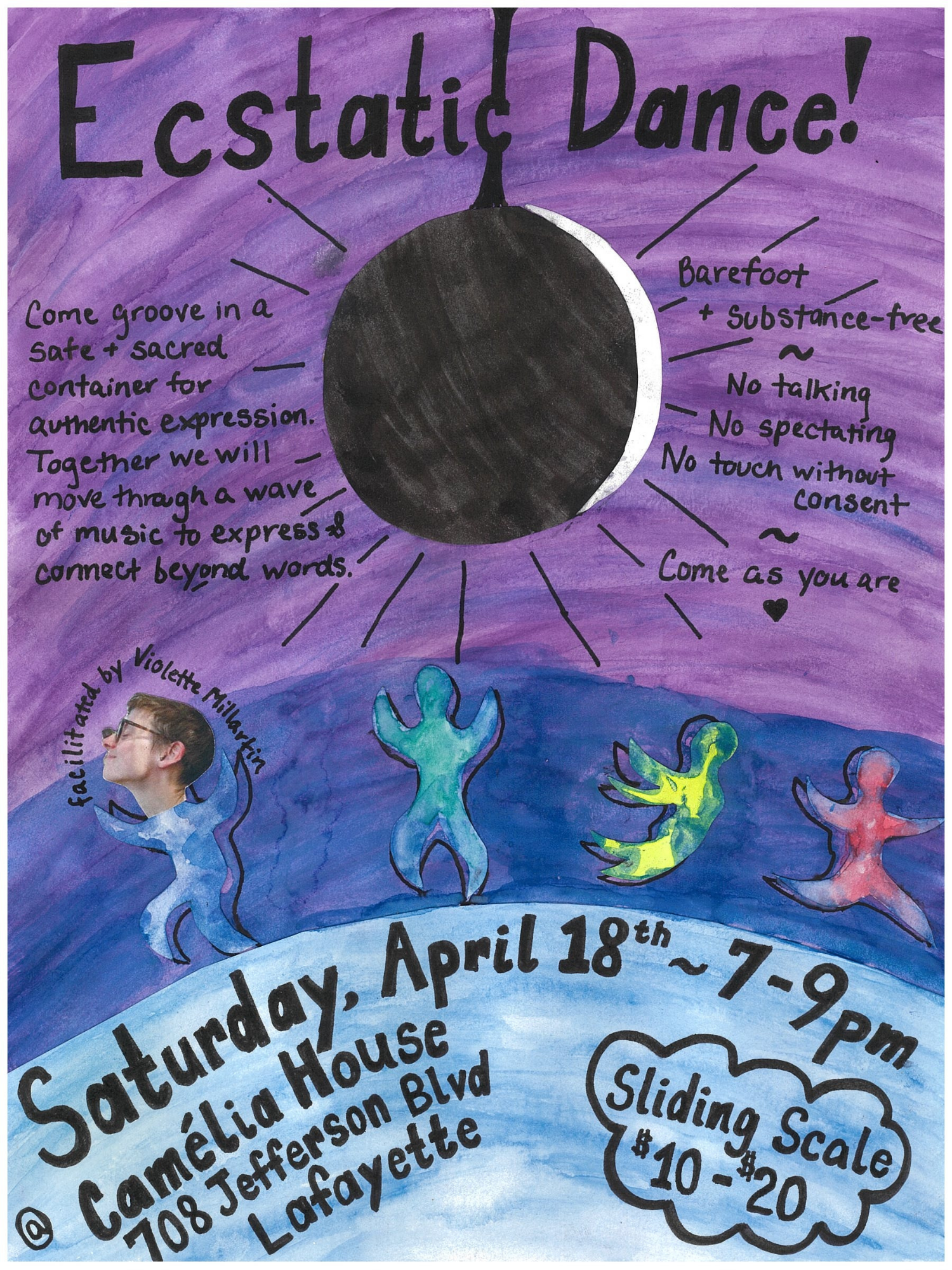 Ecstatic Dance! Saturday, April 18, 2026 7:00 PM 9:00 PM Camélia House 708 Jefferson Boulevard Lafayette, LA, 70501 United States (map) Google Calendar ICS